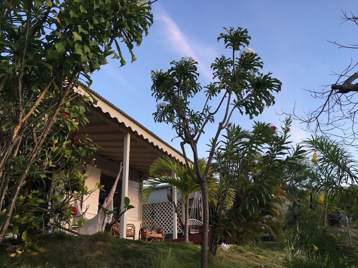 Enjoy the lovely setting of this romantic spot in nature. Located opposite the Bay of Saintes, reputed to be one of the most beautiful in the world. This Creole hut is eco-friendly because it's all wood and self-contained in water and electricity. (rainwater and solar electricity). The outdoor shower at room temperature in a green setting will offer you a guaranteed change of scenery. The kitchen designed and furnished in a Creole spirit will bring you all the equipment necessary for a dream stay.