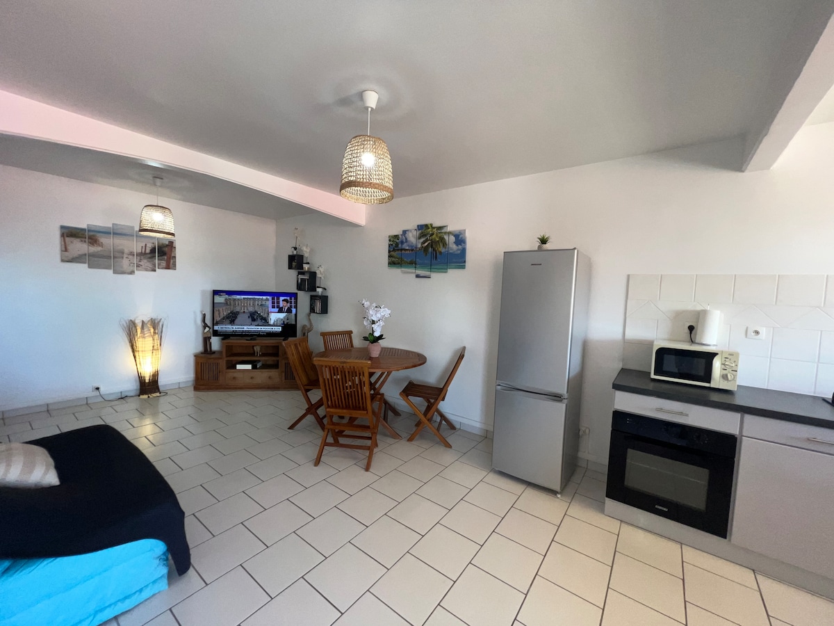 Studio located in absolute calm in the residential area of Pain de Sucre. 1 air-conditioned bedroom. Wi-Fi You have 4 beaches within a 5-minute walk to the property, including the most famous Le Pain de Sucre (nice spot for snorkeling). For hiking lovers, we have Le Chameau where you can go to see a beautiful sunrise/sunset. Views of Guadeloupe and Terre-de-Bas. You will be very well hosted in an idyllic setting. Rest assured vacation