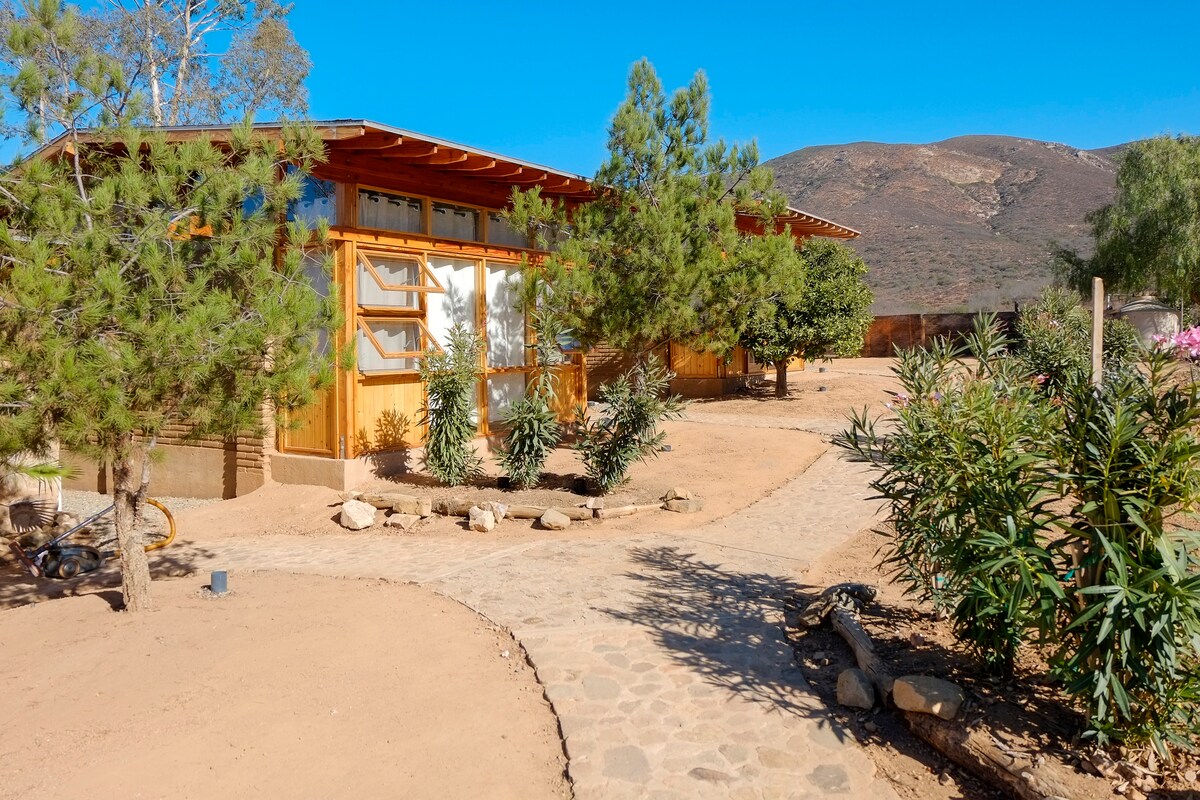 A magical Valle de Guadalupe Spot, offering a unique balance of simplicity and sophistication. Clean cabins are designed and decorated to provide the coziest ambiance and are equipped with first class amenities for both an authentic and confortable stay. We have ac, heater,WI FI, rain shower, patio seatng, fireplace in every deck and more! We also have artisian pizzas made from sctratch, cheeseboards, and wines wich are served daily until 8:00 pm Every day we bake scones for you with coffee!