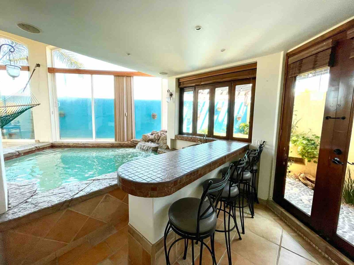 Freshly remodeled & decorated oceanfront condo in Rosarito/Calafia, with EXCLUSIVE (1 of 5) walk-out access to terrace level heated pool. Unreal view! Please review "Other Details to Note" section before booking to ensure our home aligns with your needs & expectations. The third level pool is strictly off limits to all guests under age 18. No pets. Onsite amenities include - Multiple pools and Jacuzzis (some with private cabanas) - Tennis Court - Sand volleyball court + So much more….