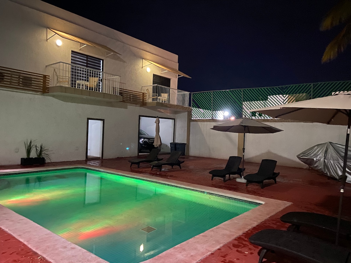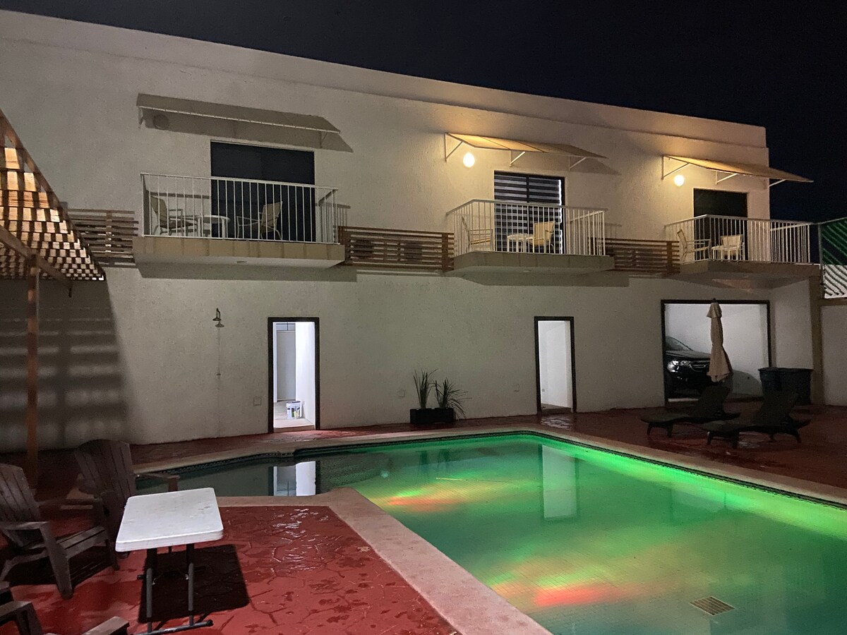 "Hermoso loft, en una de las mejores zonas de la Paz. Cuenta con grandes espacios decorados y acondicionados para que pases unos días y noches increíbles, tambien podrás disfrutar de un espacio en donde confortaras tus sentidos en la alberca común o en los camastros con grandes sombrillas que harán de tus días una estancia placentera. Servicio gratuito: contamos con bicicletas para uso de nuestros huéspedes. La distancia hacia el malecón es de 6-7 minutos en coche y 15 minutos caminando."
