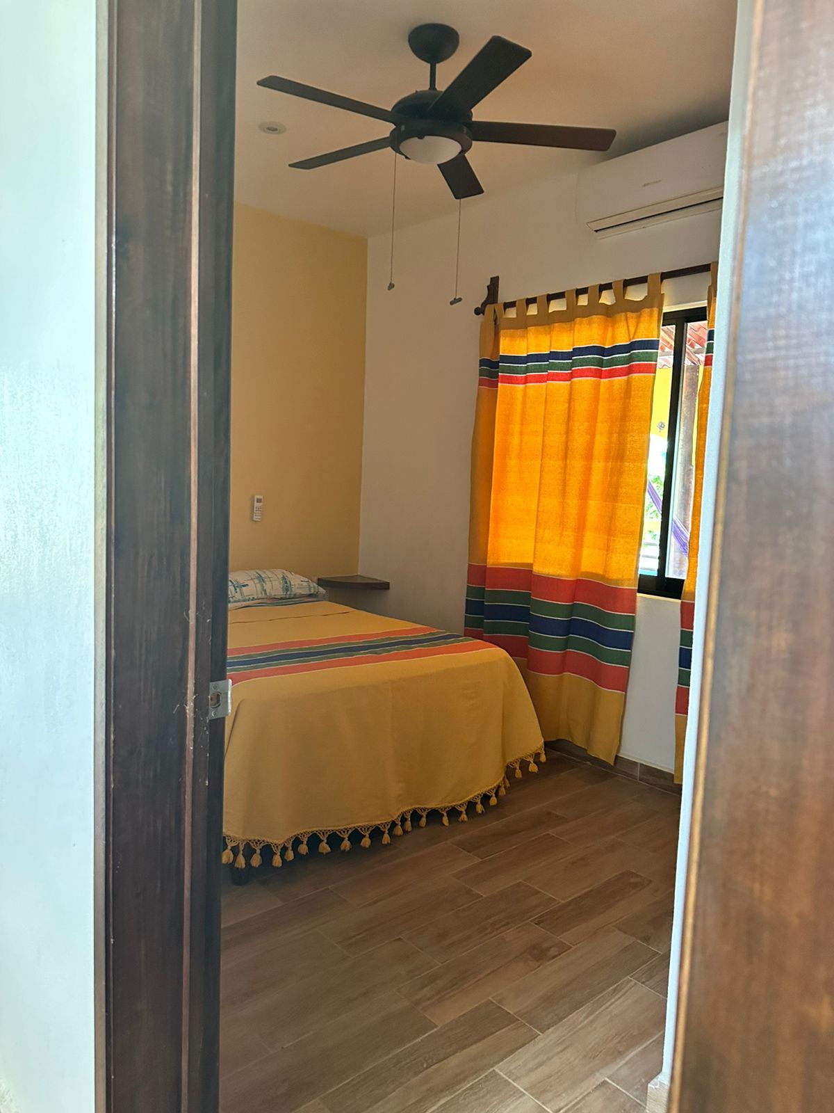The suite has some gorgeous mexican details, like the tile, sink and floor handmade in Puebla, chairs from Michoacan, nice wooden tables, oxide bar and closets, oaxacan quilt and river stone shower floor. The living room is outside on the terrace with pool view. The kitchenette is well equipped. It is a colonial style building with a small but pretty swimming pool. The area is quiet and to minutes from Carrizalillo beach, nice restaurants, mini super, boutiques, drug store, and other services.