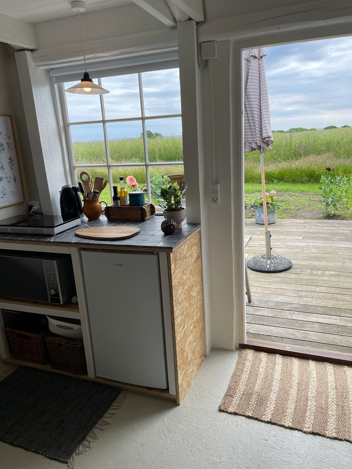 Off grid tinyhouse in scenic surroundings – perfect for those seeking peace and quiet. The house is located on an open field overlooking the water and has everything you need: electricity, water, gas burner, outdoor cold water shower and a simple toilet. Here you will find simple, modest surroundings and a relaxing atmosphere – ideal for immersion and presence in nature.