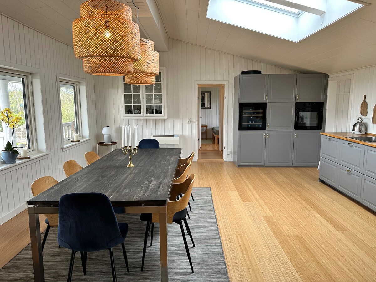 Experience island charm and serenity in our stylish abode, crafted by the renowned interior firm, Norsonn. Just 8 minutes from the captivating cliffs, our house exudes a romantic bohemian ambiance and vistas of the majestic Mon. Enjoy a tranquil and private getaway. With coffee table books, modern amenities like 1000MB Wi-Fi, TV, parking. Comfortable beds are prepared for added comfort and included in the cleaning fee. Welcome to your island retreat!