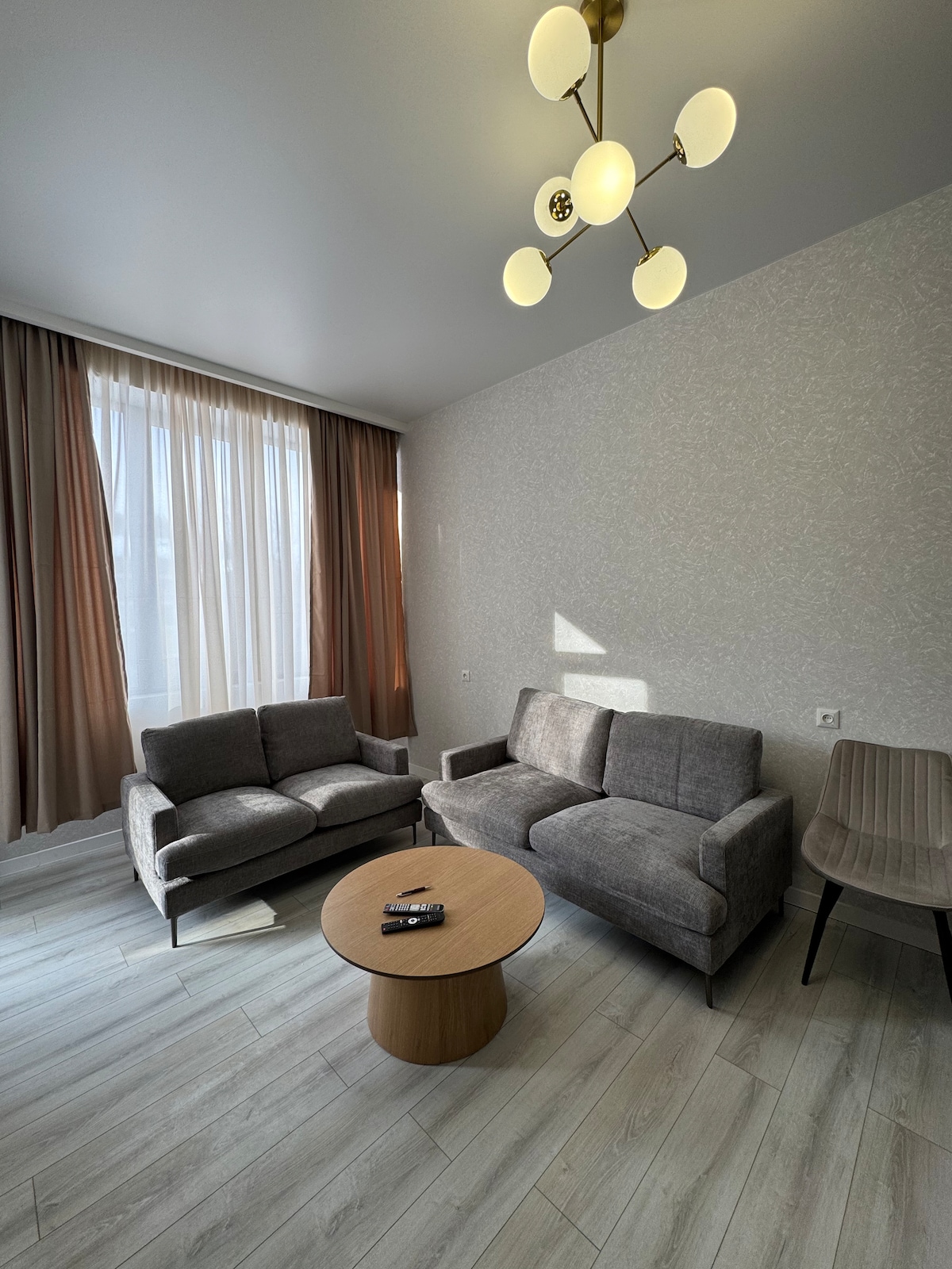 Just finished 40 sqm 2-room apartment with sunny balcony near Didveli mountain. Apartment is located in one of the most desirable residential complex - Didveli Residence - which offers playgrounds, basketball/football court, restaurant, grocery shop, outdoor common areas, parking. Adjacent forest has relaxing swings, picnic tables/settings, lovely pathways along brook and fairytale like ambience. Didveli ski lifts are located within 700 meters and are accessible during winter and summer.