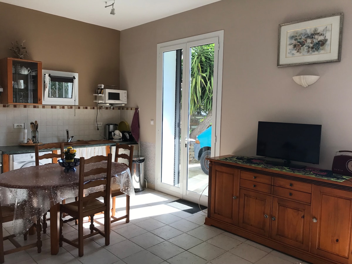 This peaceful accommodation offers a relaxing stay for the whole family. Garden level of 35 m² nestled in the heart of a 20-hectare property in the countryside. Located in the eastern plain 7 km from the sea. With a capacity of 4 beds, it has a separate bedroom, a bathroom and a living room/kitchen (equipped) with a sofa bed and air conditioning. A large covered terrace with garden and unobstructed views, its swimming pool shared according to a half a day for your peace of mind.