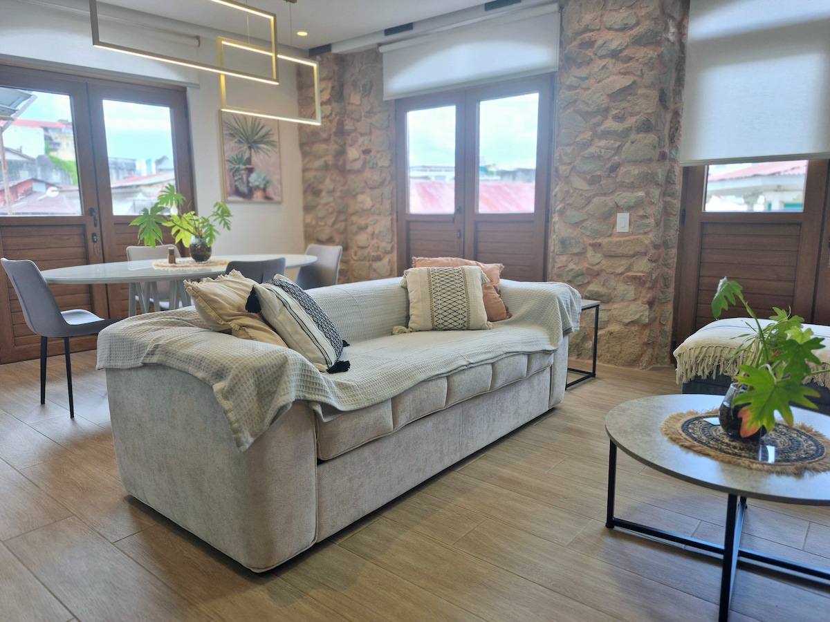 Enjoy a unique experience, in this elegant and centrally-located loft. Fully remodeled 1 bedroom apartment, in a central location in Casco Viejo (the old city). You will be just steps away from many restaurants, cafes, museums, and the existing night life casco has to offer. Located in “Jeronimo,” this restored- colonial building was built in the year 1850, and features unique crafted wall décor, as well as some of the original "calicanto" walls.