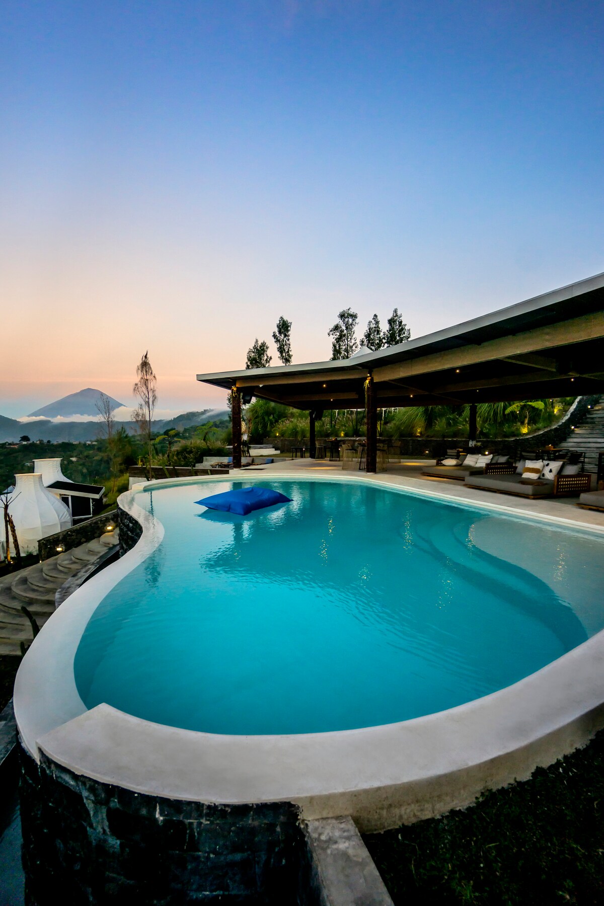 This well designed acomodation is styled in Modern minimalist design with stuning View. It's a fun outdoor glamping which has it's own view to the mountains and lake views in Kintamani. ☑ 4 Types of Room (Glamping, Suites, Villa, Cabin) ☑ Swimming Pool Normal Water (No Hotspring) ☑ Restaurant ☑ Public Fire Place ☑ Mountain & Black Lava View