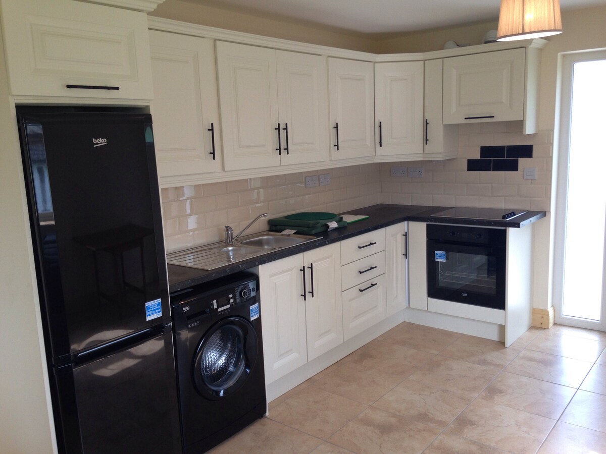 Beautiful newly built apartment located on working farm. Warm, bright and spacious with two triple en suite bathrooms. Fully equipped kitchen with cooker,sink,fridge freezer and washing machine etc along with sitting room area. Lots of animals to see all around the farm. Pull out sofa bed in the sitting area if required. Your own parking space for 2 cars right at the door. Located in great location for exploring kilkenny and the surrounding counties.