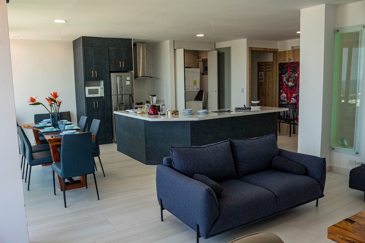 Take a break and relax in this quiet apartment. Suite 3C Sunrise, ideal for couples or small families (2 to 4 people). Located a few steps from Chipipe beach, it combines comfort and style with a master bedroom, two full bathrooms, living room with sofa bed, equipped kitchen, Smart TVs, high-speed WiFi and digital lock. A modern, functional and perfect space to enjoy Salinas in total comfort.