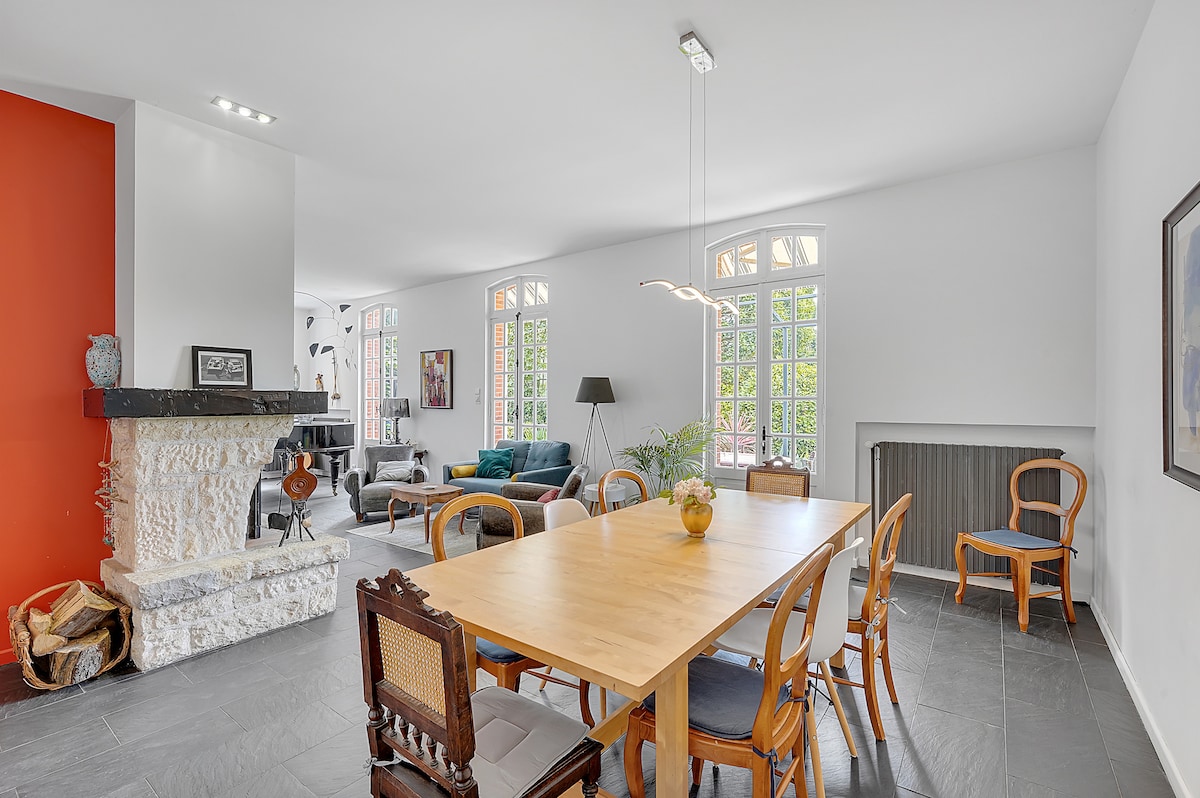 Our spacious and bright family home in a green setting in Toulouse awaits you! In addition to the large wooded garden, a beautiful terrace, shaded garden furniture and a swimming pool (June-Sept) will refresh you after roaming the streets of the Pink City. Located a 13-minute walk from Mirail-U subway station or 3 minutes by bus. Close to amenities (bakery, pharmacy, grocery, butcher, post office, bank, etc.), close to the ring road and shopping centers. Private parking. NB: No parties allowed