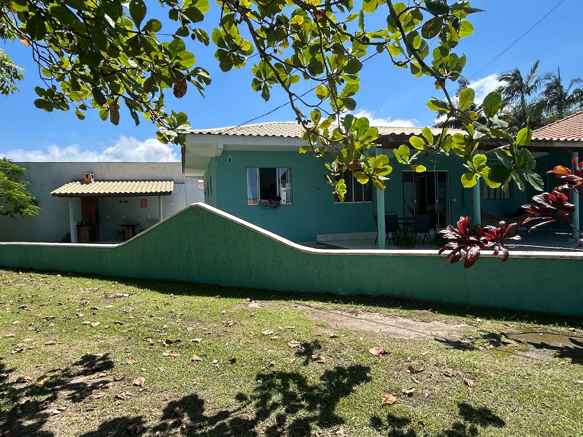 Relax with the whole family at this unique place to stay. Space for up to 3 cars, large backyard with pool* and great leisure area with barbecue. All rooms are air-conditioned, with 2 en-suites and 1 room with an exclusive bathroom. Full kitchen with utensils, laundry, dining/living room and toilet. The house is about 300 meters from the beach. 300 mega Wi-Fi + 58" TV with Netflix and YouTube. *Pool has a protective fence, if necessary.