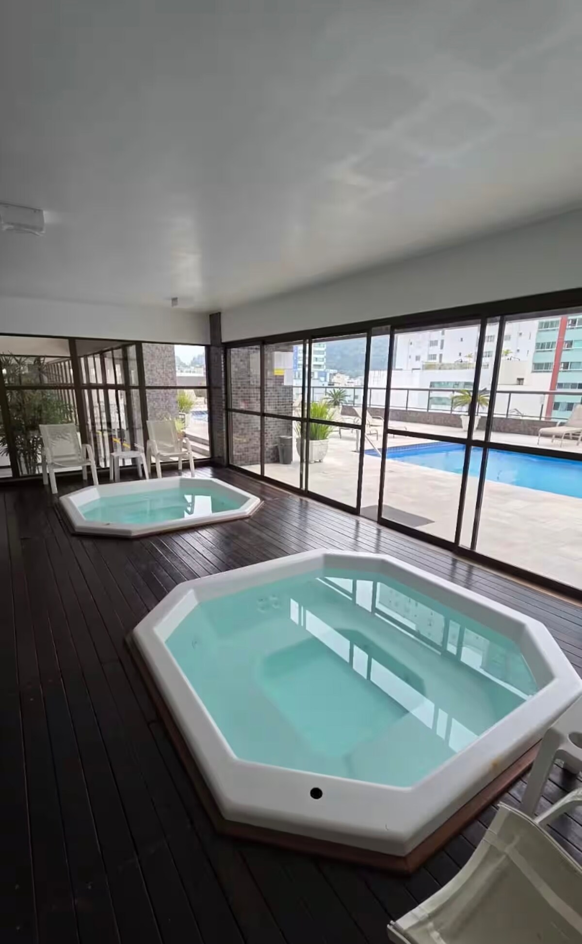 A simple and cozy apartment with 2 bedrooms, including 1 suite, a living room, a social bathroom, a balcony, a fully equipped kitchen, and a laundry area 🏡✨ 📍 Prime location in the heart of Balneário Camboriú, just a few steps from the beach, with easy access to shops, restaurants, and local services. 🏨 Located inside a hotel, offering great amenities such as a swimming pool, garage, dry and steam saunas, hot tub, and 24-hour front desk.