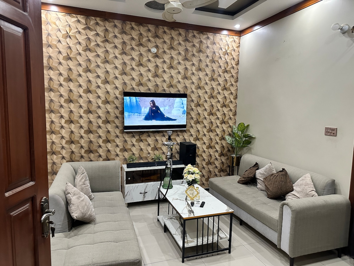 “Welcome to your cosy retreat in Bahria Town Karachi” An aesthetic place to stay for couples ,friends and family Free Services: Netflix Amazon Refreshment Kitchen Utilities Electricity ,gas,water 24/7 available Extra services with extra charges: 1:Maid 2:Car with driver 3:Home chef 4:Servant for outside works Other things to note please be mindful of noise levels and refrain from playing music loudly to ensure a peaceful enviroment for everyone.Enjoy your stay.