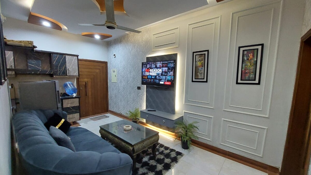 Peaceful and secure apartment located in Malik Society, Gulzar-e-Hijri—one of the city’s risk-free residential areas. Close to Lucky One Mall, major hospitals, universities, gyms, and restaurants. Ideal for families, students, and professionals. The apartment features a clean, cozy setup with solar energy backup in case of load shedding. Well-connected location with easy access to transport and all daily essentials. Perfect for short or long stays.