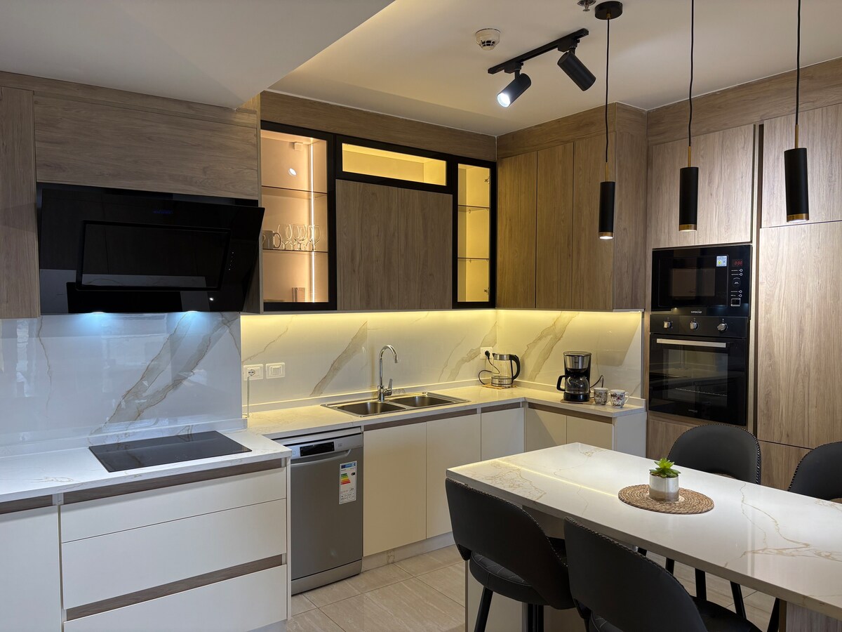 Brand new! Ultra Luxury One-bedroom furnished apartments in a prime location are now available for short and long-term rentals. Apartments are fully fitted with high-quality furniture, smart appliances, and high-speed internet with access to the in-building private gym (for residents only). The size of the apartment is between 55 – 60 m2 and comes with either twin bed or king size with a cozy balcony or a private backyard providing a spacious and comfortable living style.
