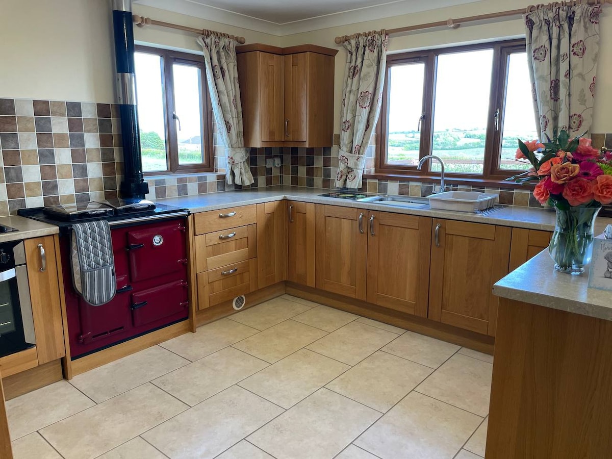 Homely bungalow with hot tub & countryside views