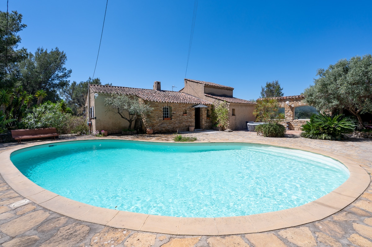 Domaine la Pastorale - Ollioules / Sanary Luxury Provencal stone villa of 300 m2 with stunning views of the olive groves and the sea. In addition to its exquisite location in Provence-Alpes-Côte d'Azur, close to the port of Sanary/sea and its famous most beautiful market in France 2018. The property has four bedrooms, each with their own bathroom for 8 people, spacious private heated pool (extra charge) in the middle of lush gardens and vineyards on a 3-hectare plot.