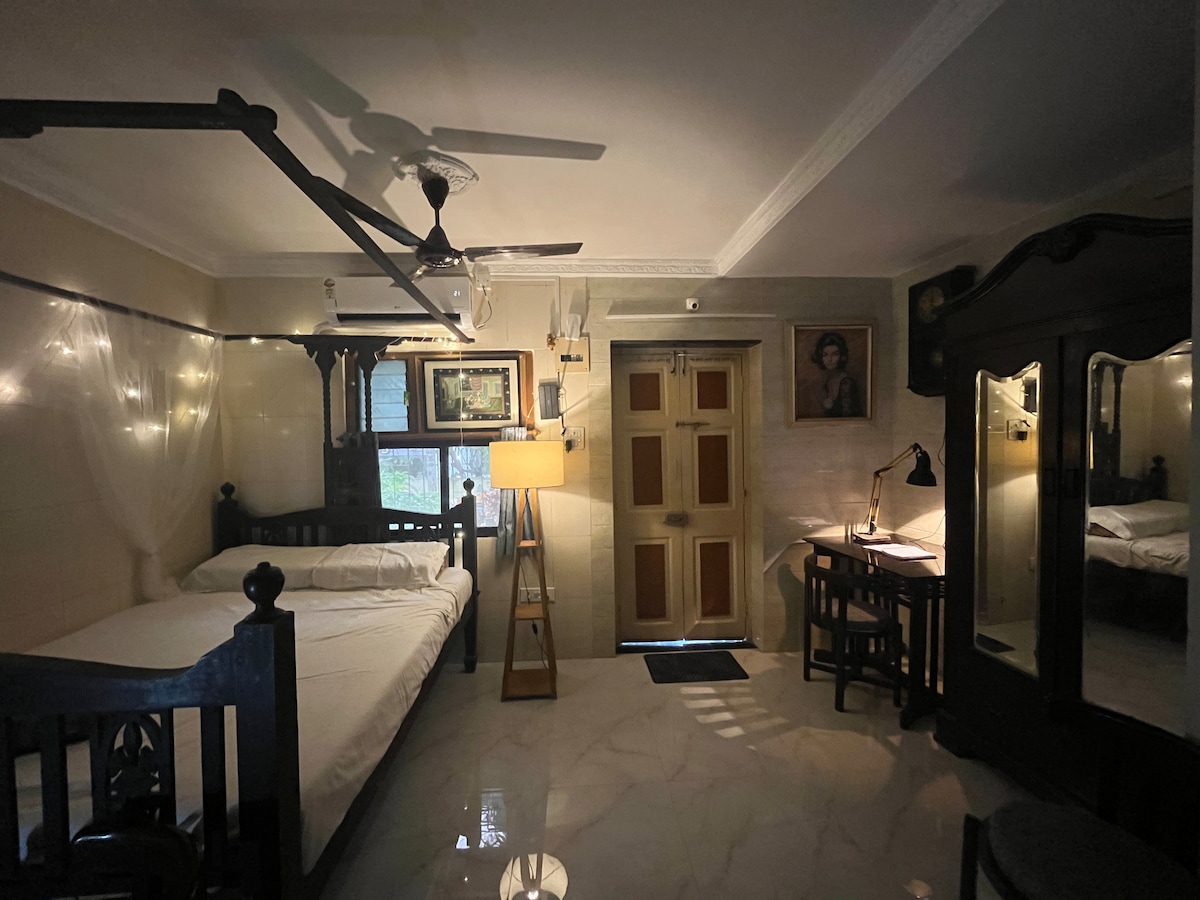 Welcome to the Bombay bollywood pad, This place is unique and peaceful in midst of bandra, I have been working in the field of bollywood since past 8 years, And this place is hand designed by me and my personal collectives are In it. Every element is either brought from chor bazaar or from someone’s house or imported, This is a uniquely premium apartment equipped with all modern amenities for day to day use, It comes with a remote working setup as well.