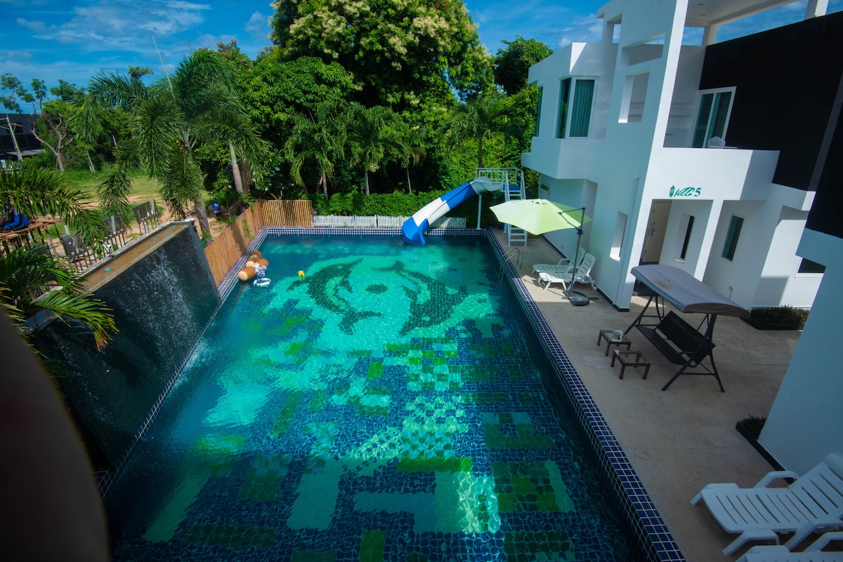 A lot of spaces for individual and family trip with all utility supplies, don't need to bring anything for your stay except your personal belonging . This unit is brand new, very close to U-tapao airport within 15 mins drive and it is your own beach with meal option (Breakfast-Lunch and Dinner). We provide a Limousine Van to pick and drop you off per your preference, moreover if you looking to rent our Jet Ski we can provide service for you as well. This deal is a heaven deal!!!