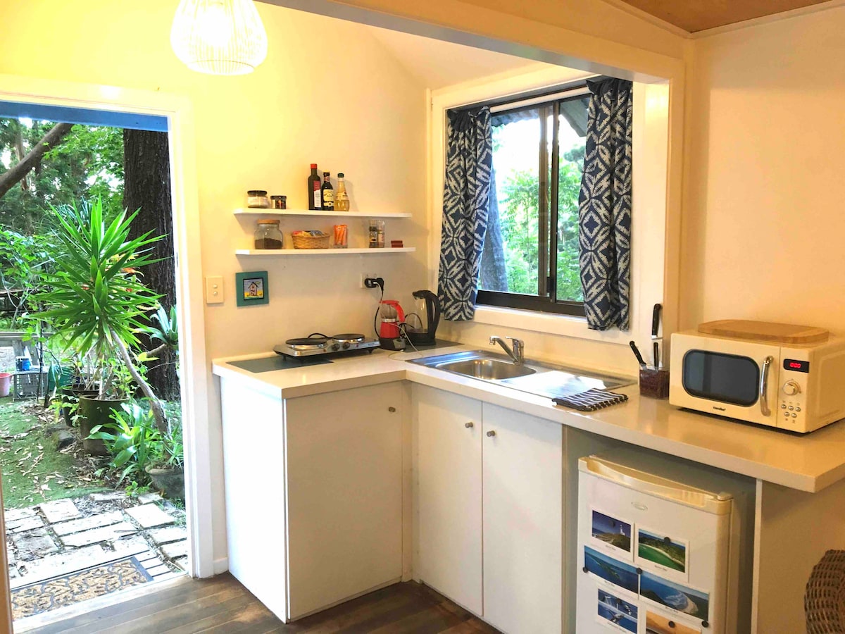 Your accommodation is a newly converted ex shipping container, fully self contained , with a large covered all weather deck area attached. The Getaway Box sits serenely and privately in sub tropical rainforest gardens approx. 6kms from central Byron Bay. You are only a 5 minute drive from beaches, restaurants and shopping. Enjoy the best of both worlds - immersed in natural surrounds away from the hustle and bustle, it's hard to believe you are only minutes from the fun and attractions of Byron.