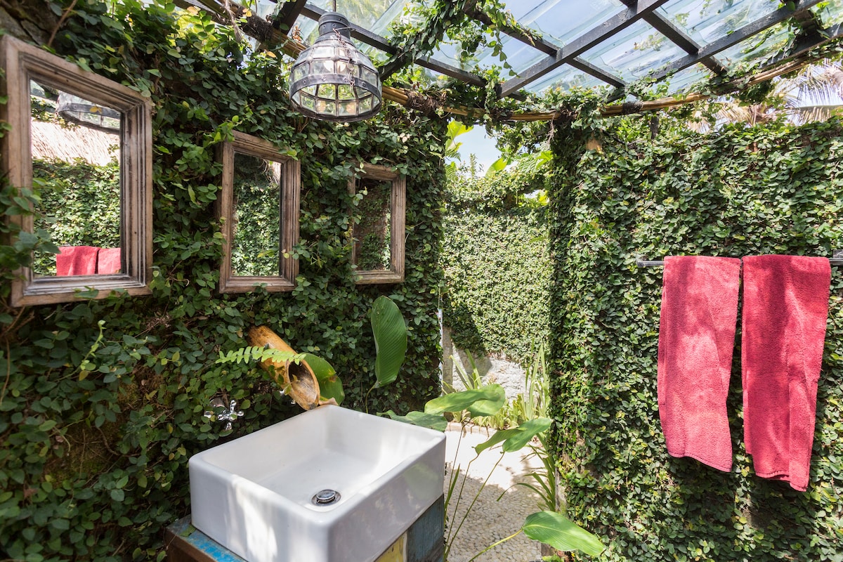 This is very awesome bright modern woodenbedroom with wonderful semi open bathroom also surrouding by greeny open garden view. Perfect for your ultimates Bali's Countryside escape and see real Bali's CULTURE and NATURE Situated behind my beautiful Balinese family compound that separated by beautiful gate. You will be welcomed by original Bali's Engraving architecture, house layout with its own tample. i and my family will taking care of you as a family member. "LIVING THE BALINESE LIFESTYLE"