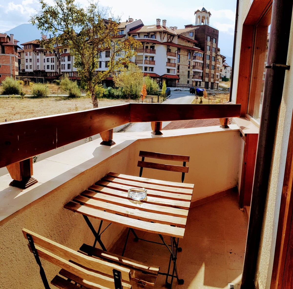 Our place is ideal for a short and long term stay. Renovated a year ago, it is in a very quiet and peaceful area yet minutes walking to the center of Bansko and the ski lift. It is fully equipped with everything you need - washing machine/tumble drier, dishwasher, Smart TV, new air conditioning. Our guests can enjoy the use of the swimming pool and Gym free of charge. Steam room and sauna for an additional fee. Enjoy your breakfast on the balcony looking at the stunning views over the mountains.