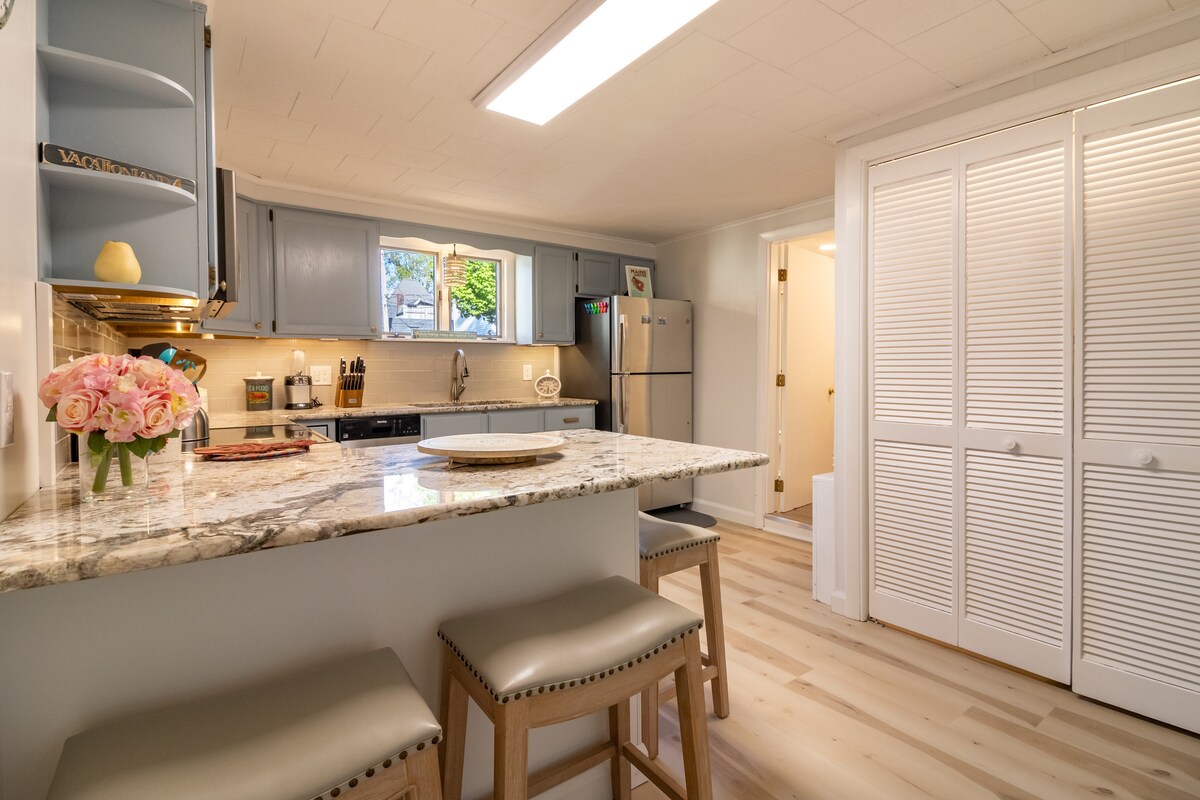 Vacation Acadia: “On Island Time". A cute coastal themed cottage steps to waterfront & right in downtown Bar Harbor. Waterview & smell of salty sea breeze greet you from the doorstep! Ollie’s Trolley just across the street. Close to Agamont Park, Bar Island Trail, Ocean Path. Short easy walk down the streets & dine at restaurants. Tandem Parking for 2. Each room equipped with mini splits to provide heat and cooling during warm Bar Harbor summer months!