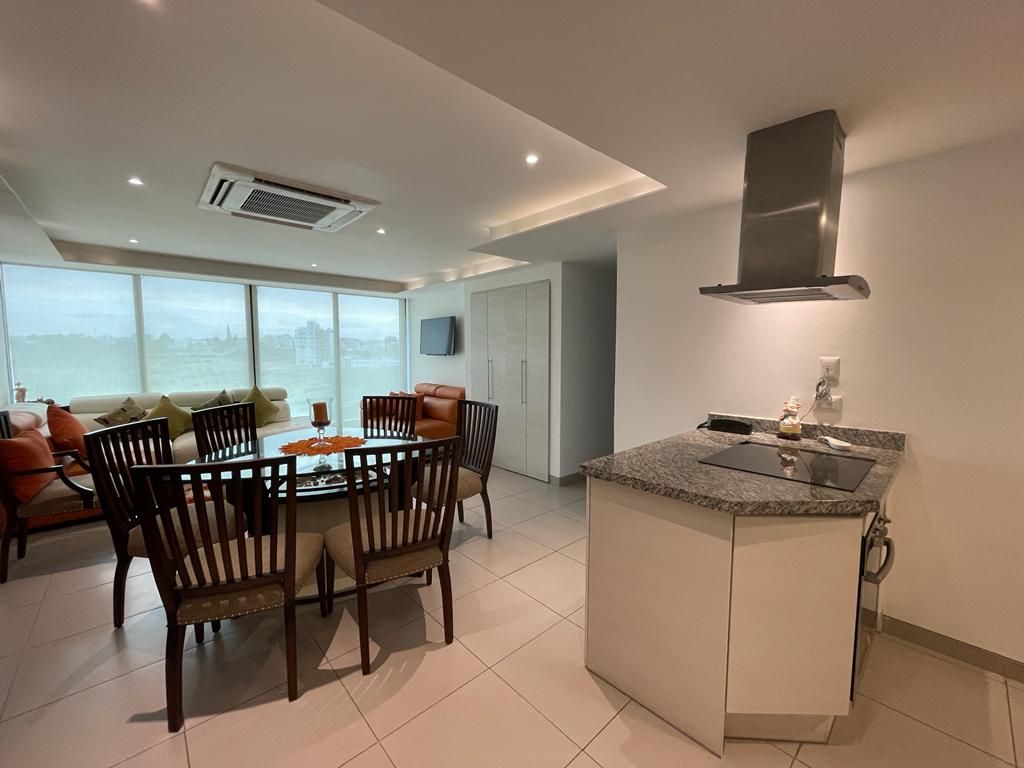 Enjoy a comfortable stay in this fully equipped 2 bed, 2 bath apartment, ideal for families or small groups. It has a queen bed, 2 full beds, 1 sofa bed, 2 modern bathrooms, kitchen equipped with American bar, stove, microwave, big fridge, closets, high-speed WiFi, 4K Smart TV and private parking AMENITIES COMPARTIDOS Full access to the Rooftop, pool, jacuzzi, fire pit and bbq overlooking the ocean.