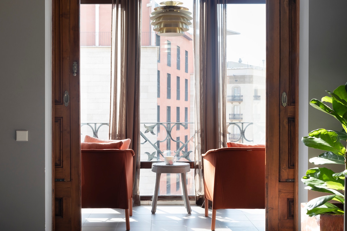 Time will pass and you will remember the magical sunsets of Barcelona while you watched the pulse of the city from the large terraced balcony. That's what travel is all about, memories that we will keep forever. This magnificent and spacious apartment, with retro design furniture and details right in the center is the ideal home for your dream vacation.