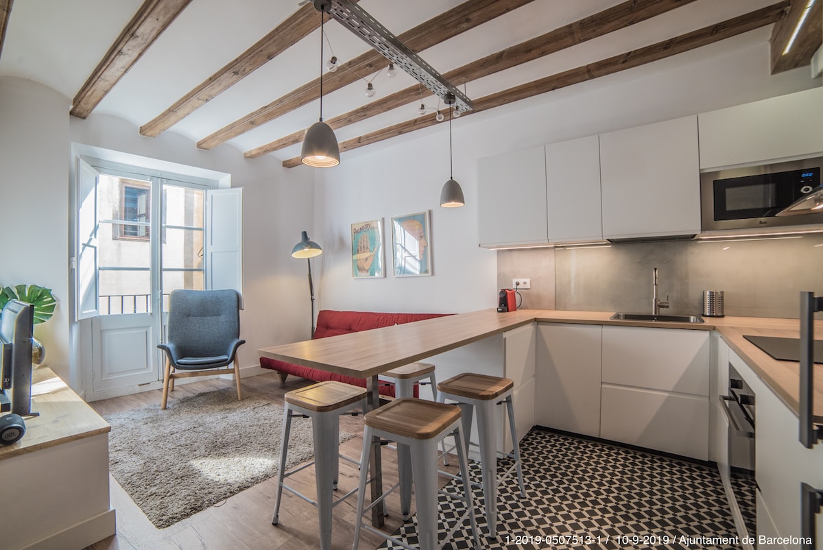 Your home with a terrace, just 8 min from the beach. Relax in this cozy apartment designed to make you feel at home. Enjoy a private terrace, perfect for sunny breakfasts or dining under the stars. The beach is just steps away, fully equipped kitchen, fast WiFi, and flexible check-in. Ideally located near restaurants, shops, and transport. Towels and linens provided. 24/7 assistance. I’ll share local tips so you can make the most of your stay. Experience Barcelona like home!
