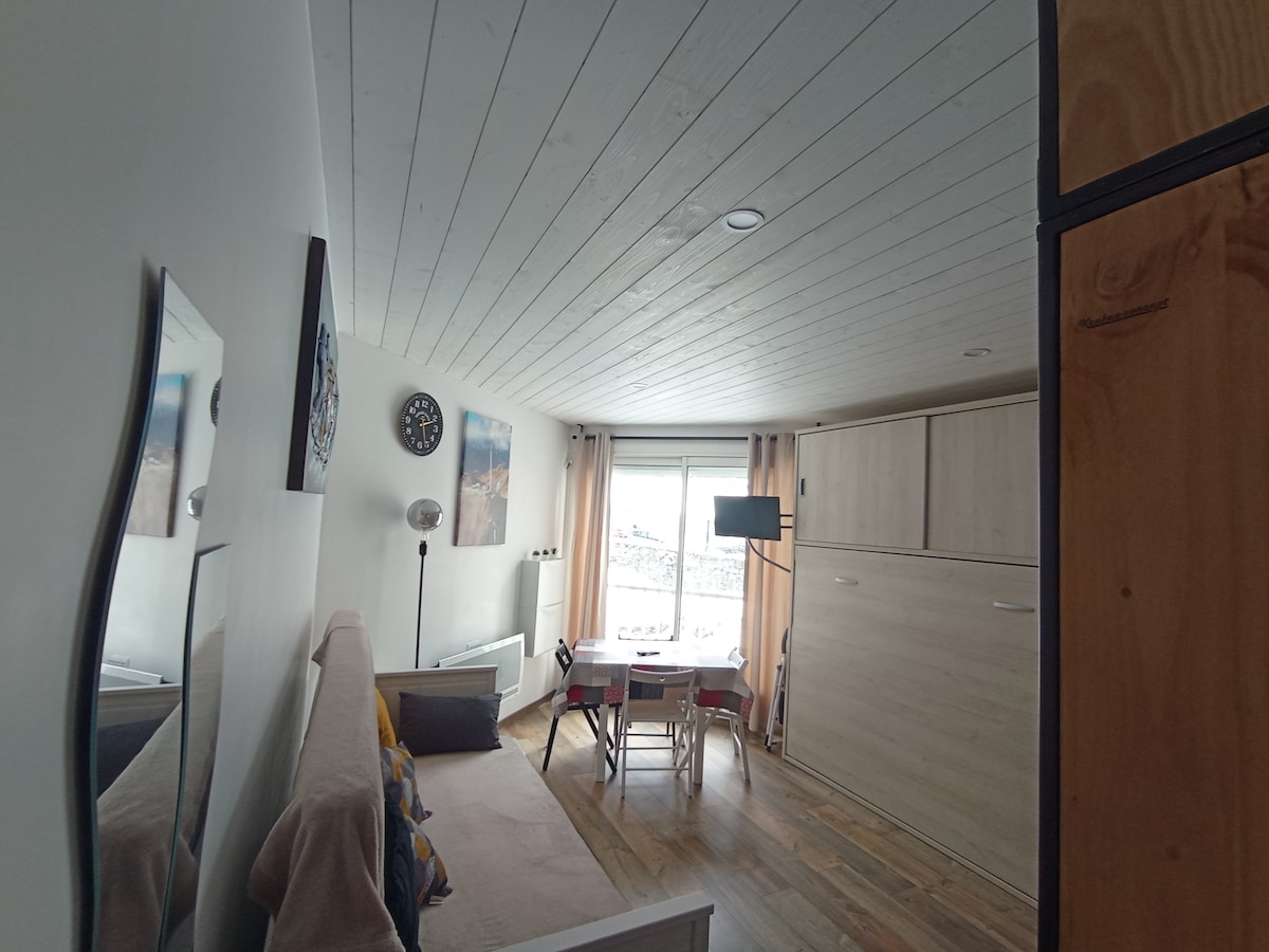 "22 m² studio, pleasant and functional, located on the 2nd floor of a quiet residence with elevator. Facing south, it enjoys beautiful light. This studio sleeps two people, with the possibility for four. It has a ski locker and a secure bike storage room. The free ski-bus stop is just across the street from the residence, making it easy to access the slopes. Please note, the studio does not have Wi-Fi or a cleaning fee. Great for a quiet and convenient stay.