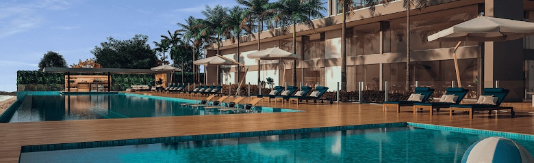 Full Home Club facing the sea. Finely decorated apartment, with sea view, new, with an en-suite plus two bedrooms, large balcony with charcoal barbecue in Home clube that offers a swimming pool with an infinity edge, children's pool, heated pool, wet bar, Jacuzzi, fitness center, sauna, cinema, game room, playroom, Pet space, Kids space, playground, hammock area, beach tennis court and etc. Exclusive access in front of the beach. About 15 km from Beto Carreiro World Park.