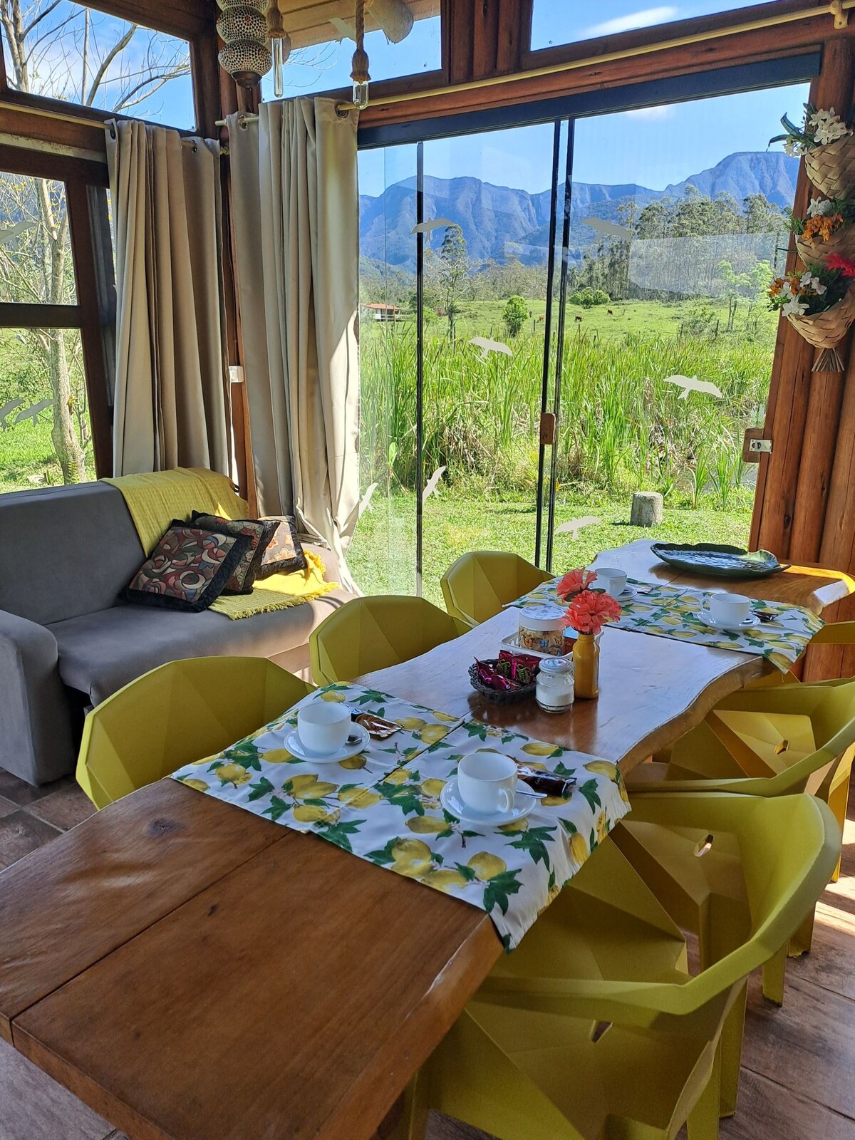 Next to SERRA DO RIO DO RASTRO. The cabin has a “green” view on all sides. The bathtub is under the canopy of trees and fully integrated with nature. It is like being in the woods, but with the comfort and safety of being indoors. The place is quite private and quiet, except for the birds singing. On rainy days, the glass ceiling brings you closer to nature and the feeling of relaxation. It has hot water in all faucets, supplied by a gas heater.