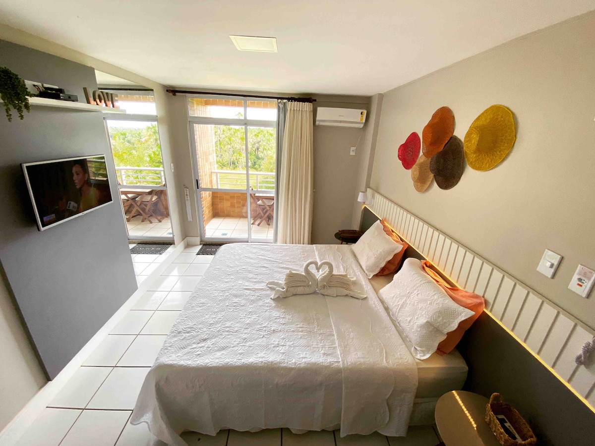 Enjoy the coziness of Casa Carnaúba's ecological suite! A beautiful natural adobe construction, with natural thermal insulation and surrounded by all the nature of this paradise that is Atins. We are located on the Main Street of the Village, just minutes from Atins beach. The room is airy and has a private balcony with a hammock, minibar, wall fan, semi-open bathroom and space to eat and work.