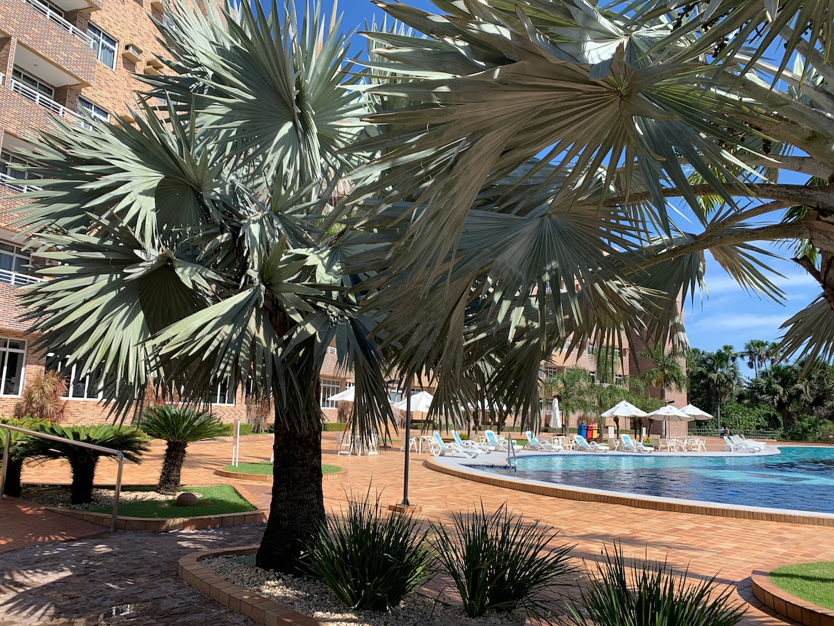 Welcome to paradise. A resort very close to the Lençóis Maranhenses National Park, the best in the region, with several leisure options - swimming pool, wet bar, marina with pier, restaurant, toy library, sauna, party room, games room, sports court, gym. Here you can count on the comfort of a resort and the beauty of local nature at your window. You have an apartment with two suites, living room and small kitchen, with a balcony facing the pool. Comfort and convenience.