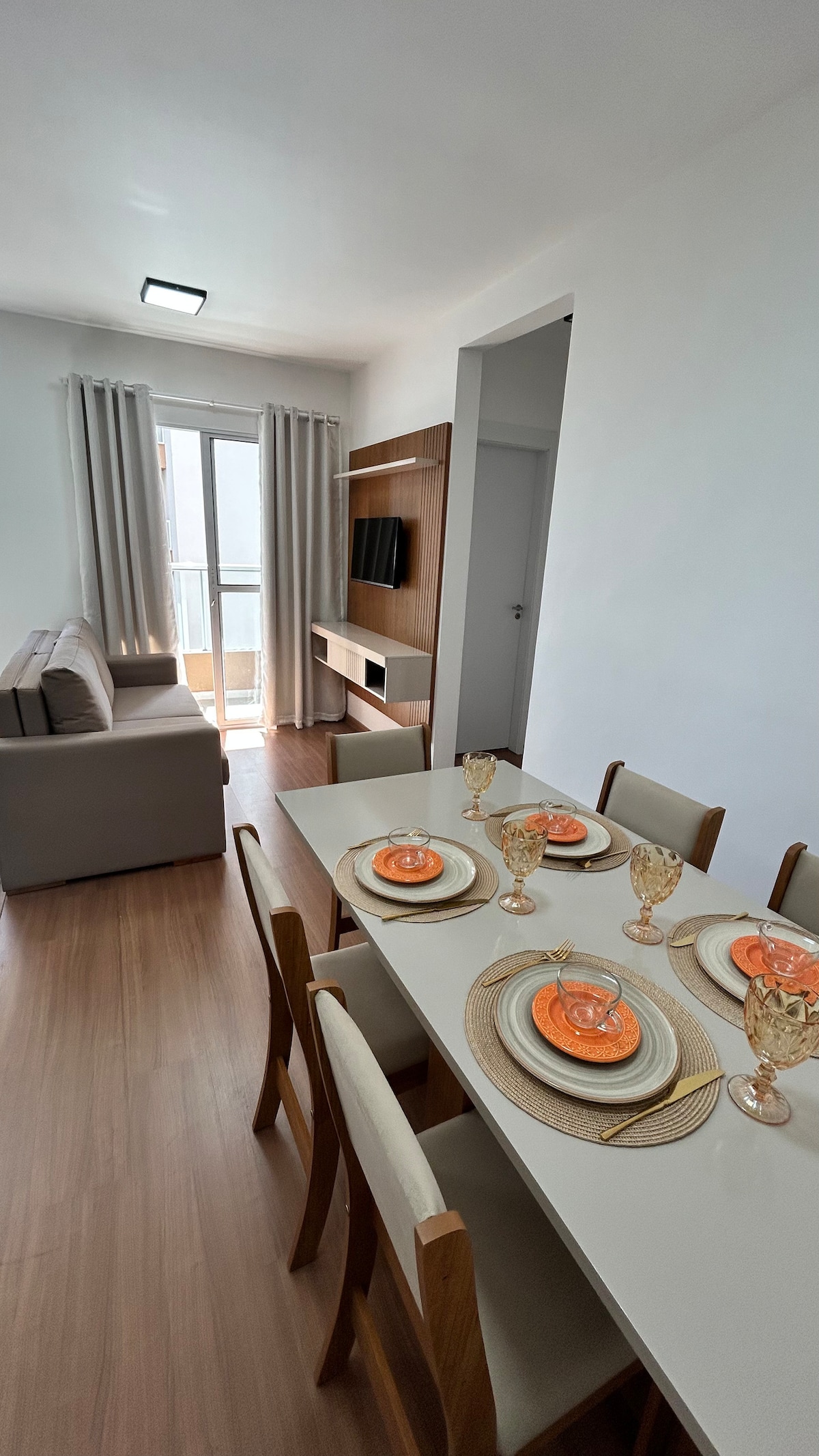 Apartment Novo in Barretos For Up to 4 People Air Conditioning in the Living Room and Bedrooms Room with sofa bed and SmartTV Room 1 - Suite with double bed and closet Bedroom 2 - Two single beds and study table Full Kitchen 1 parking space Condo with 24-hour concierge. Guests are required to send personal documents for registration Location 700 meters Hospital de Amor 3km Termas Barretos Country 3.5km Facisb College 4 km from Unifeb College 10km Parque do Peão 45min Termas de Olympia