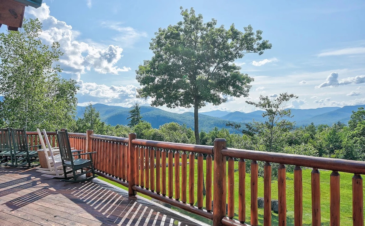 Escape to the serenity of our new Mountain Wild View cabin retreat, where nature's grandeur meets cozy comfort. This cabin offers an unforgettable getaway for those seeking tranquility and adventure. Whether you're sipping your morning coffee on the spacious deck or cozying up by the fireplace at night, you'll be immersed in the beauty of nature that surrounds you. This custom crafted log home, with unobstructed views to Mt. Washington, the Moat & Presidential ranges, is simply spectacular.