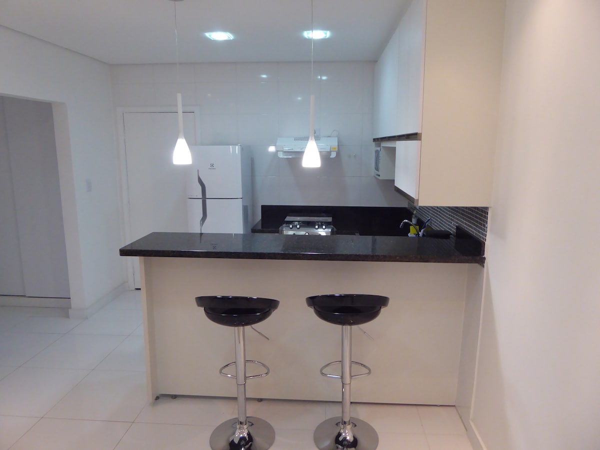 Studio with great location, close to Alphaville and downtown Barueri, equipped with a KING bed, Wi-Fi internet (SPEED 350 MB), compact kitchen and smart TV. Perfect for people traveling alone or with others, for both leisure and work. The condominium has a swimming pool, fitness center, laundry, as well as a mini market. Next to the studio, there is a Minuto Pão de Açúcar, restaurants, bakery, gym, pharmacy and bars, all for getting around without a vehicle. See you soon