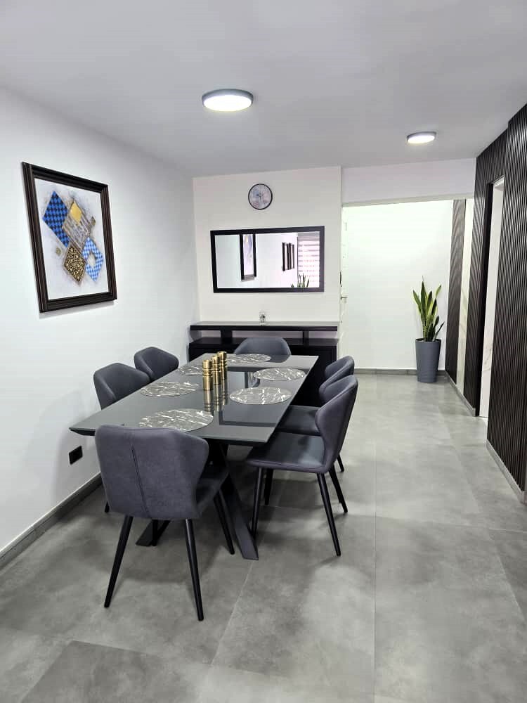 Relax in this quiet and elegant space, newly renovated, with modern design, 70mts2, located 5 minutes from the business, commercial, gastronomic and nightlife heart of Caracas. Ideal for those who visit the Capital City temporarily (Tourists, Business Executive, Entrepreneurs). Only 5-story building in a residential area Nearby areas: Teatro 8, Hotel Eurobuilding, CCCT, Centro Comercial Tolón and Paseo Las Mercedes.