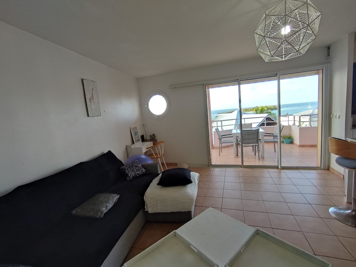 Apartment in secure residence, completely renovated, air-conditioned with direct beach access. Breathtaking views of the Basse Terre and La Soufrière mountains, Les Saintes, Marie-Galante. Composed of 1 beautiful terrace on the sea side, 1 living room, 1 fully equipped kitchen and 2 bedrooms. Close to the airport, ideally located by its central position on the island. Close to the Marina with its many restaurants to enhance the evenings and to book your boat trips