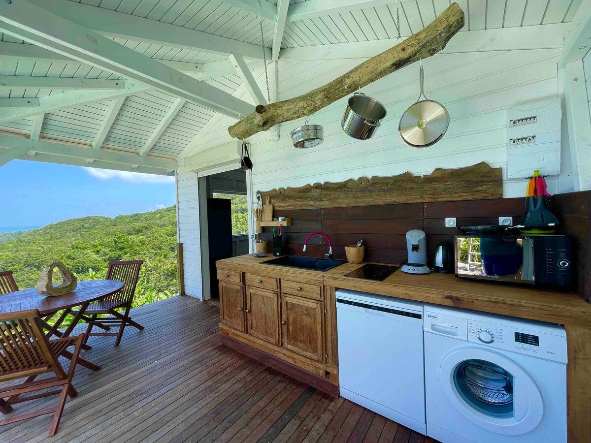 Enjoy the lovely setting of this romantic spot in nature. Located opposite the Bay of Saintes, reputed to be one of the most beautiful in the world. This Creole hut is eco-friendly because it's all wood and self-contained in water and electricity. (rainwater and solar electricity). The outdoor shower at room temperature in a green setting will offer you a guaranteed change of scenery. The kitchen designed and furnished in a Creole spirit will bring you all the equipment necessary for a dream stay.