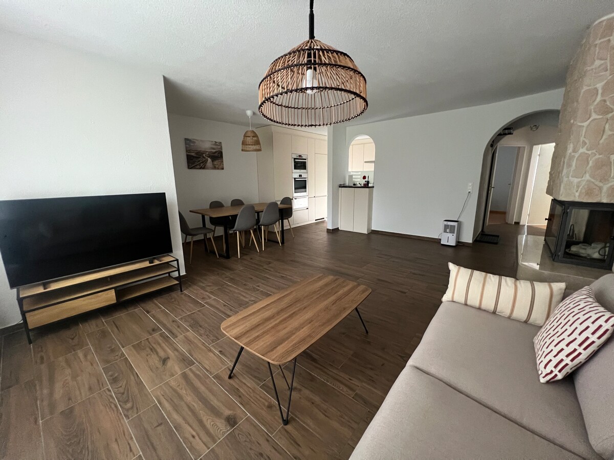 Lehne dich zurück und entspanne dich – in dieser ruhigen, stilvollen Unterkunft. Trotz ruhiger Lage erreichst du die Stadt in wenigen Minuten mit dem Auto. Kein Auto? Kein Problem, eine Busstation ist gleich vor der Haustür. Was erwartet dich? Eigener Eingang, Wohnzimmer mit TV (Smart TV, Netflix,wifi free), Eigene Küche mit Esstisch. Grosses Schlafzimmer mit einem Kleiderschrank. Modernes grosszügiges Badezimmer mit begehbarer Dusche und einem Waschturm. 60m2 Garten mit Sitzgelegenheit