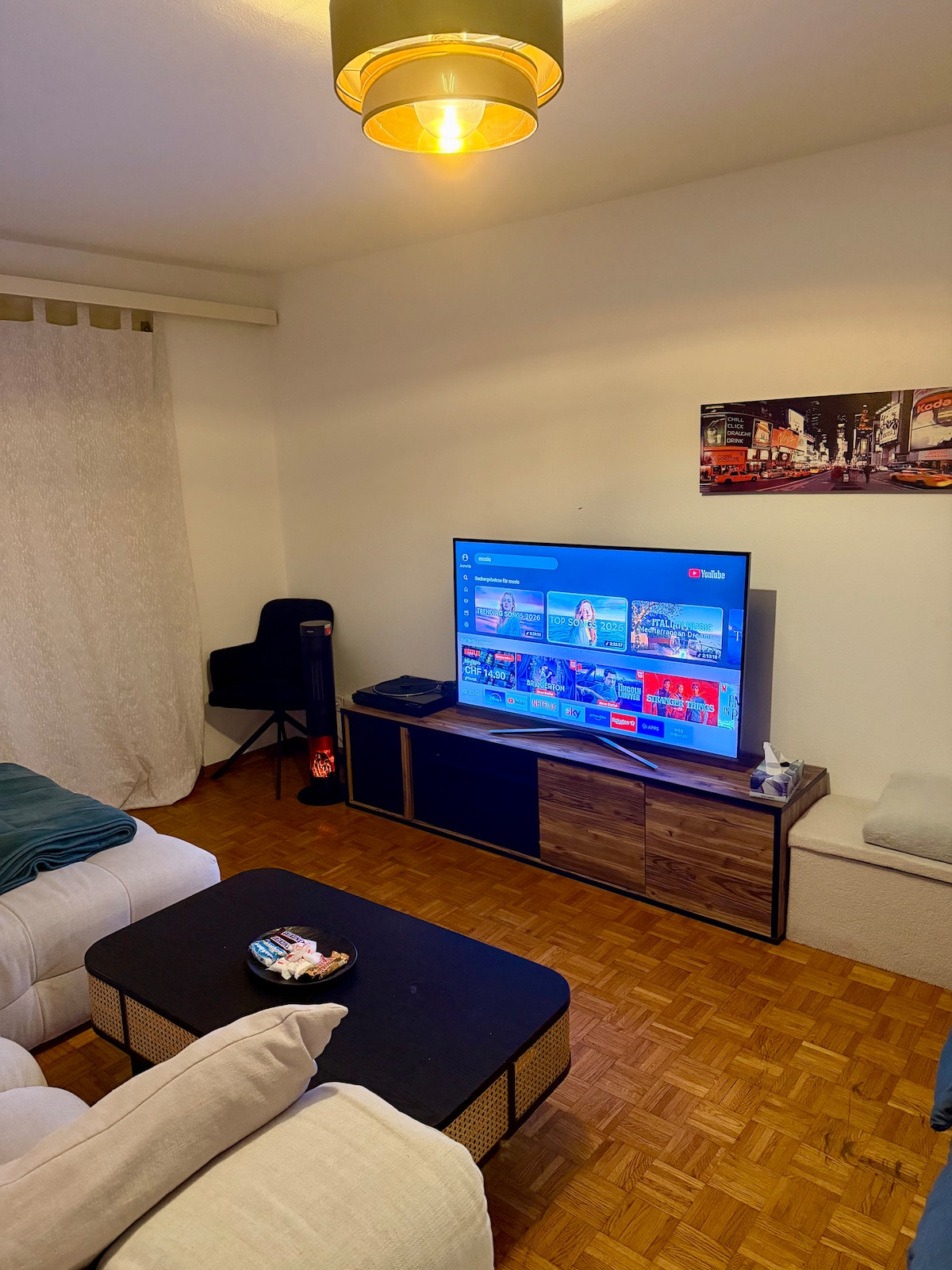 🅿️Free parking & fast highway access 👜Ideal for business stays & city trips ✈️ Zurich Airport reachable in 5 min by car 🏙️ Public transport (20 min door-to-door) to Zurich City Center (main station) 🏢 Direct public transport (20 min door-to-door) to Hallenstadion & Messe Zurich 💻High-speed Wi-Fi, ergonomic workspace with height adjustable desk & docking station 🛋️Modern apartment with premium finishes & a large 65" Smart TV for movie nights 🛏️ High-quality boxspring bed for restful sleep