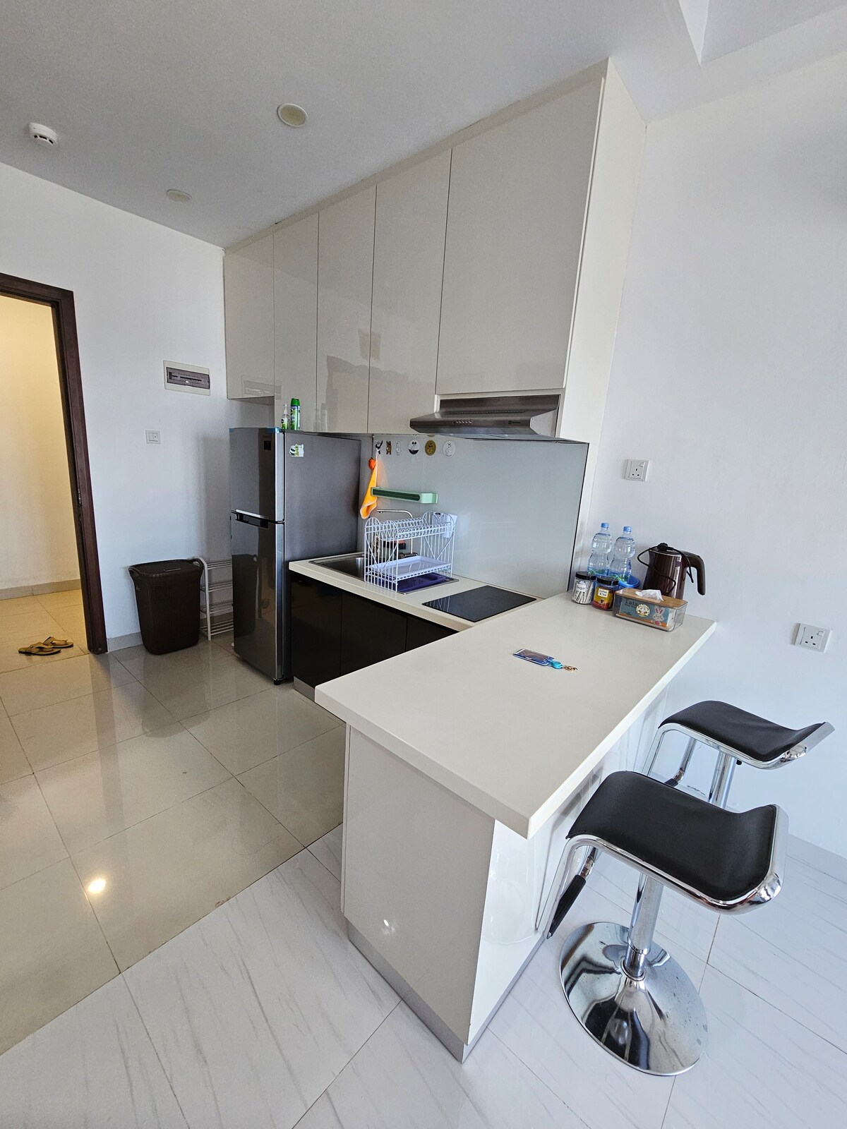 Kick back and relax in this calm, stylish, air-conditioned space with its best view of the harbour on the highest floor of the tower. It comes with a pool and a gym facility in located in the same tower. The studio apartment features a spacious bedroom with a LED smartTV, a kitchen with a microwave, a washroom with a storage heater, a dressing table with a hair dryer. Within the establishment, there is a shopping mall with eateries, hair salon, laundry shop, a bar and a 24hr convenience store.