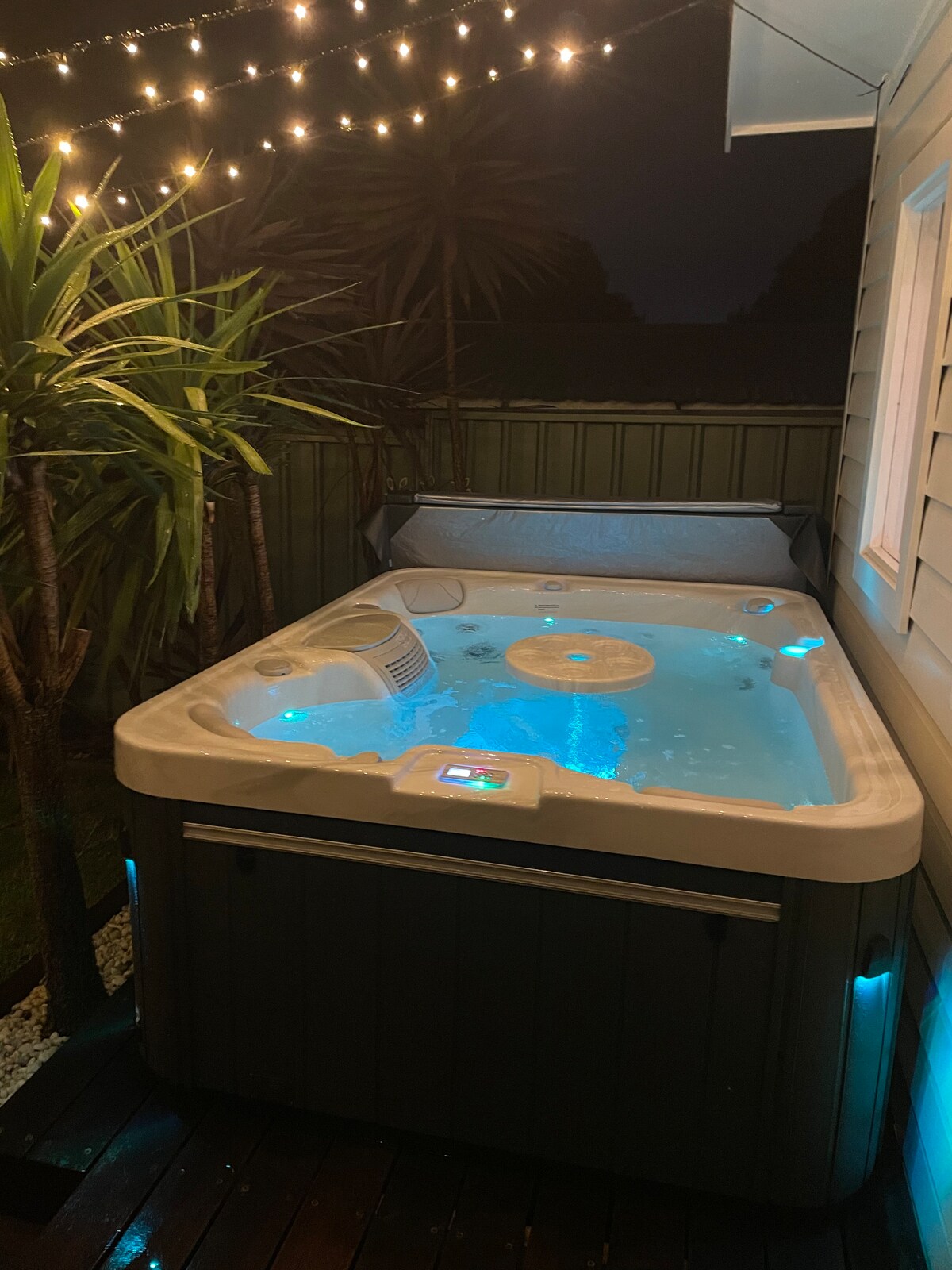 A modern and cozy garden studio with an outdoor hot tub in the sunny backyard of our home in Bateau Bay. Located in the quiet 'east side,' you're minutes from beautiful beaches, nature walks, and shops. The studio includes a workspace, perfect for remote work. Bateau Bay village and beach are 3 minutes away, with Kmart, Coles, Aldi, Woolies, and more. Walk to the local bottle shop, pub, Thai, pizza, and Crackneck lookout. Close to Terrigal, Erina Fair, and Tuggerah Westfield, all within 15 mins.