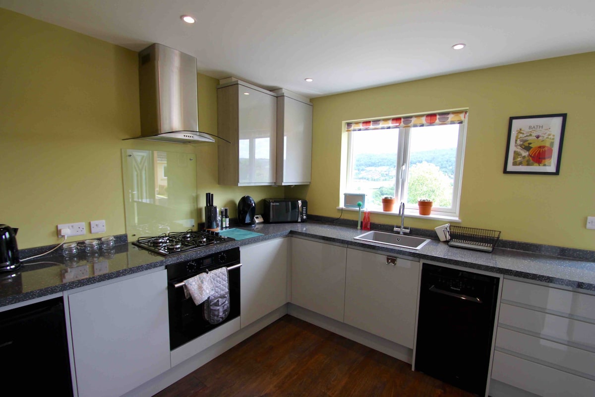 The Gables detached home offers bright airy rooms, modern contemporary decor and spectacular views over the Swainswick valley to Bath. Town centre is a roughly an hour walk or 10 minute drive and you are in the centre of the city; this home is the ideal getaway for families and groups. A taste of the countryside surrounded by beautiful walks and with cosmopolitan Bath life just moments away.