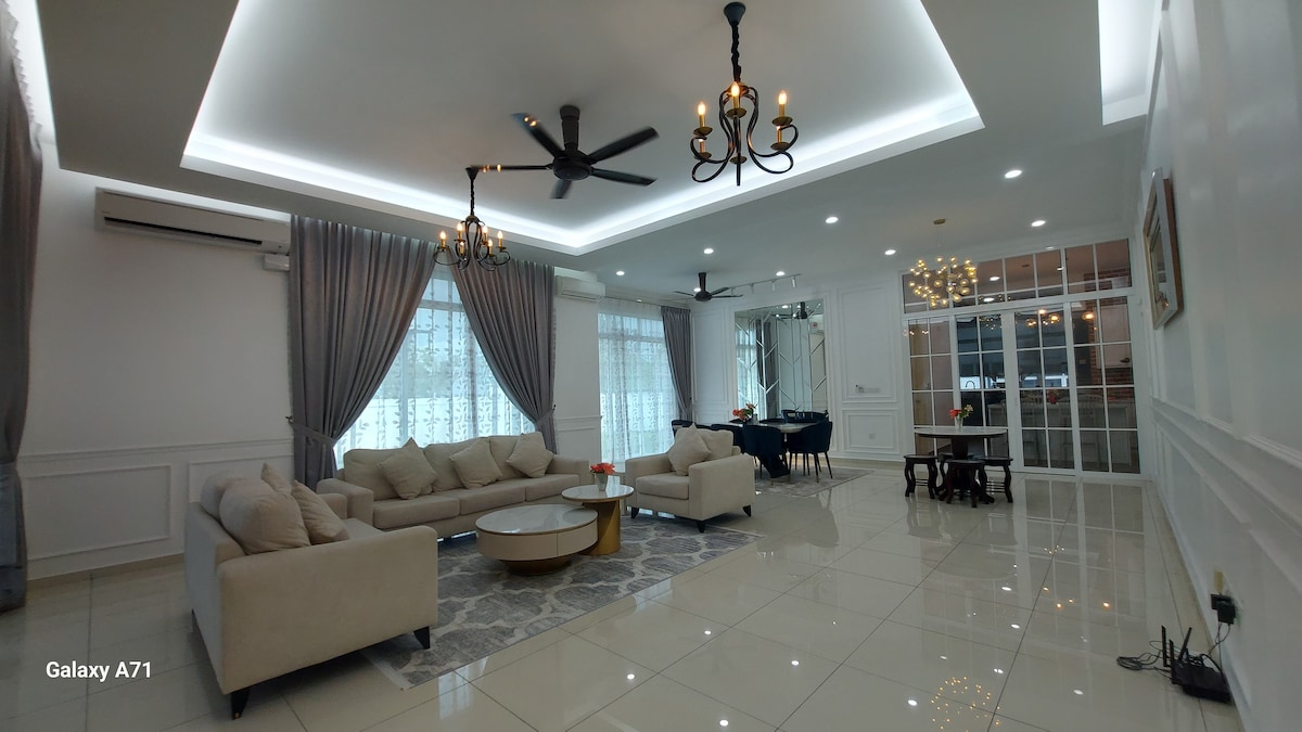 A family-friendly 4-Bedroom semidetached house in Senawang. Its strategic location with local shops and restaurants just moments away is also easily accessible via LEKAS and PLUS highways. This stunning fully furnished house will surely offer you a sense of comfort, privacy and a quiet, peaceful getaway. Favorite choices for families and business travelers. Short & Long stays are welcome! Forget your worries in this spacious and serene space.