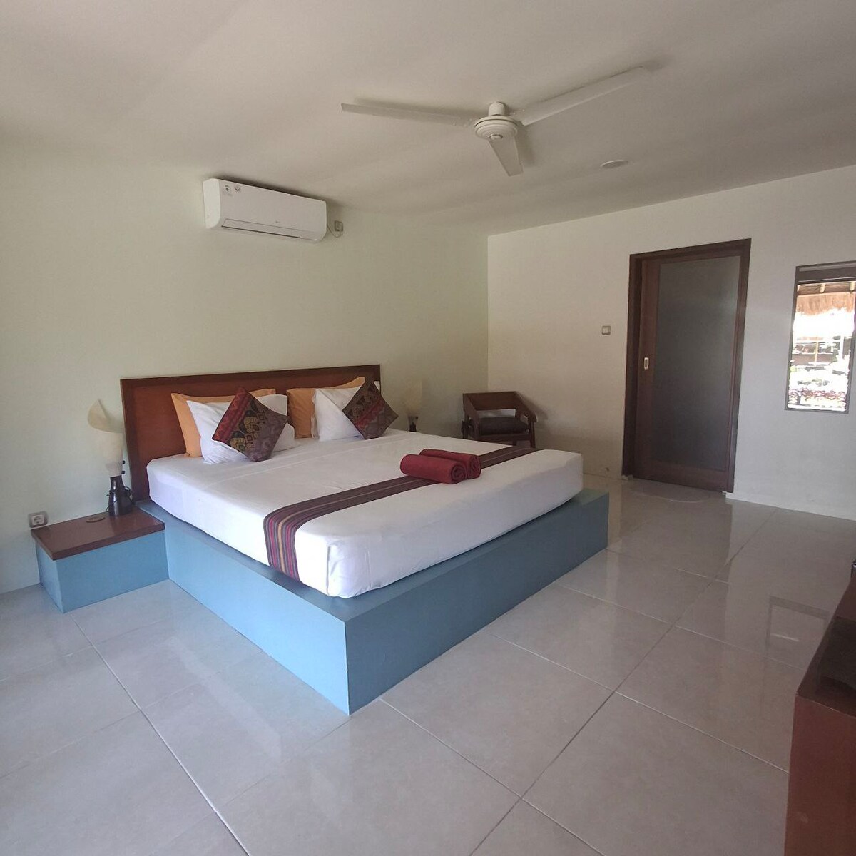 This cozy bungalow with AC is just a 5-minute walk from the beach, perfectly located beside the local football field and market. Perfect to mingle with island residents and even join a friendly BBQ next door. Simple, clean, and comfortable — it’s an authentic Gili Trawangan experience with a local touch.