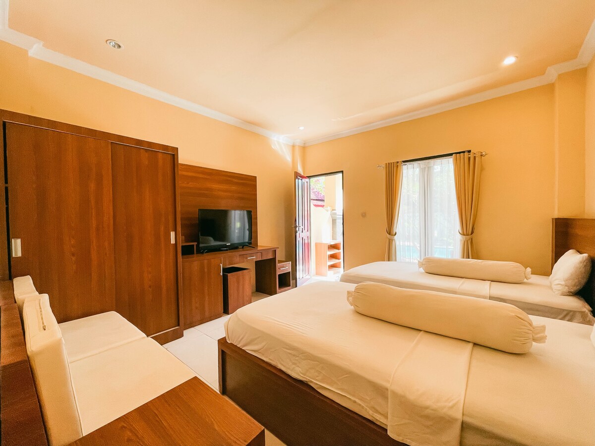 Relax at Sahara Sands Guesthouse, just a 2-minute walk from Gili Trawangan’s beautiful Turtle Point Beach. This bright, airy one-bedroom studio offers a peaceful retreat with a private entrance, ensuite bathroom, and A/C. Ideal for couples or solo travelers looking to unwind while staying close to the island’s best snorkeling, cafes, and natural beauty.